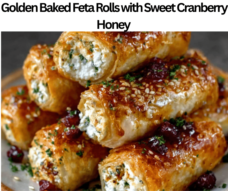 Keto Golden Baked Feta Rolls with Sweet Cranberry Honey