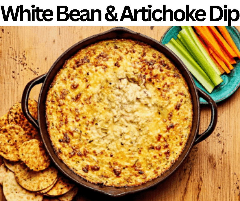 This High-Protein White Bean & Artichoke Dip has all the cheesy taste of an old-fashioned baked appetizer with a vegan