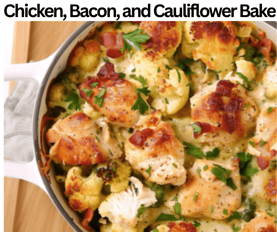 Keto Creamy Cauliflower Bake with chicken and bacon is a filling, low-carb dish that combines comfort and flavor in one