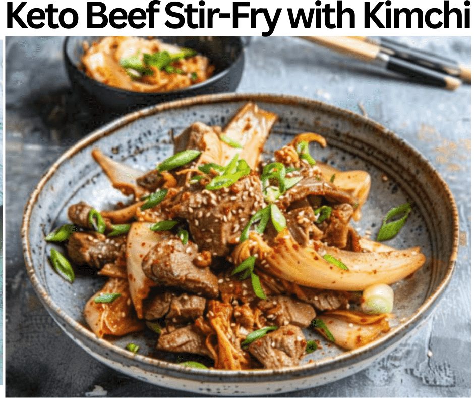 Keto Beef Stir-Fry with Kimchi balances the tender beef, crisp veggies, & tart kimchi in one skillet in this hearty