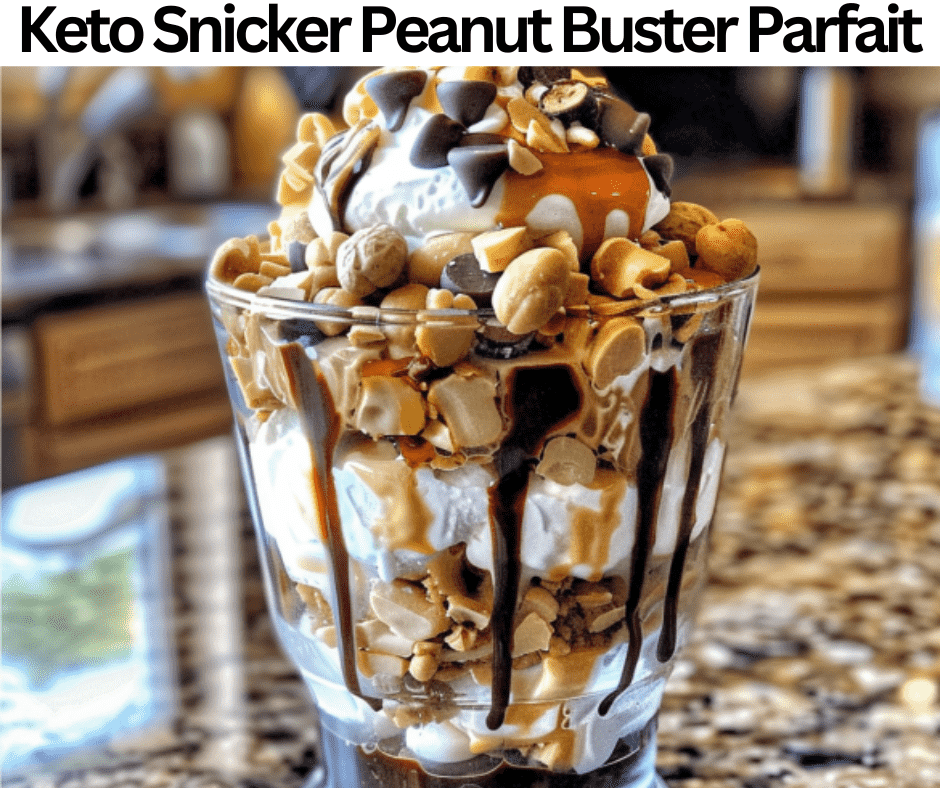 The rich and filling Keto Snicker Peanut Buster Parfait has all the tastes of the traditional ice cream shop delight,