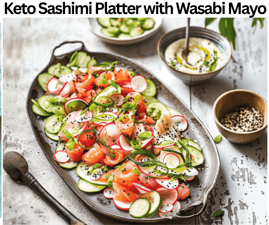 Keto Sashimi Platter with wasabi mayo is a stylish, vibrant, and novel way to savor Japanese flavors while limiting your