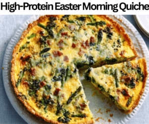 Your table will look festive with this High-Protein Easter Morning Quiche. Packed with nutty Gruyère, salty ham, and tender asparagus, it hits all the right savory notes and bakes up nicely. This simple High-Protein Easter Morning Quiche is perfect for a holiday morning and may be served warm or at room temperature.