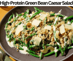 High-Protein Green Bean Caesar Salad is a fresh salad. This salad is inspired by Mediterranean cuisine. Green beans, lettuce, olive oil, breadcrumbs, Greek yogurt, parmesan cheese, Lemon juice, Worcestershire sauce, anchovy paste, and seasonings are required in the preparation of this salad. High-Protein Green Bean Caesar Salad is perfect to have as a light meal.