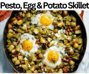 High-Protein Pesto Egg & Potato Skillet is a flavorful meal. Simple ingredients are required to prepare this dish that we can find in the supermarkets. It contains potatoes, eggs, pesto, spinach, parmesan cheese, garlic, olive oil, and seasonings. This dish prepares quickly in just 30 minutes, so it serves as a quick breakfast in the morning. It contains Parmesan cheese, so use the vegan cheese alternative or skip it to make it safe for the dairy-free individuals. Serve this High-Protein Pesto Egg & Potato Skillet with grilled chicken, turkey sausages, or grilled mushrooms for the flavorful pairings.