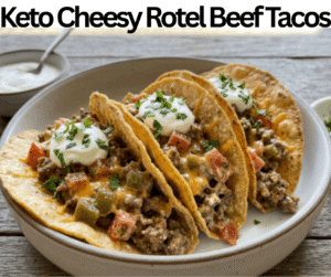 These Keto Cheesy Rotel Beef Tacos have a creamy texture and tarty flavor. We prepare these tacos with cheddar cheese, chili powder, cream cheese, onion powder, Rotel diced tomatoes with green chilies, black pepper, ground beef, garlic powder, chopped cilantro, sour cream, paprika, keto taco shells, salt, and cumin. We store these tacos in the freezer for sixty days, so you can make them earlier. These tacos have 410 kcal & 4 g of net carbs. These Keto Cheesy Rotel Beef Tacos are ideal for snacks, events, breakfasts, festivities, appetizers, special occasions, lunches, gatherings, and dinners. We require twenty-five minutes to make these tacos. You can serve these tacos with cauliflower Mexican rice, cucumber cilantro salad, or spicy chipotle mayo.