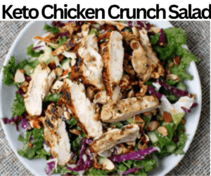 This Keto Chicken Crunch Salad has a silky dressing and a tarty flavor. We prepare this crunchy salad with romaine lettuce, salt, mayonnaise, almonds, cabbage, cucumber, olive oil, chicken breast, celery,  garlic powder, Dijon mustard, black pepper, and lemon juice. This crunchy salad contains 380 calories and four g of net carbs. We make this crunchy salad in nearly half an hour. This Keto Chicken Crunch Salad is excellent for appetizers, festivities, breakfasts, functions, lunches, occasions, sides, events, get-togethers, parties, and dinners. We don’t recommend freezing this crunchy salad, as the veggies will become moist and lose texture. But you can make it earlier, as this salad can be refrigerated for three days. You can serve this crunchy salad with Crispy Bacon Bits, Caesar Dressing, Radish Slices, Crushed Pork Rinds, Mozzarella Balls, Roasted Broccoli, or Avocado Lime Dressing.