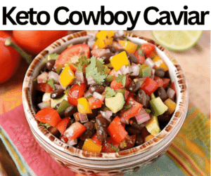 Keto Cowboy Caviar is a refreshing low-carb dip. It provides a delicious taste like the original without the addition of corn. Make this dip with avocado, tomatoes, black soybeans, cucumber, peppers, and a small quantity of red onion to provide the balance. Then add lime, olive oil, & simple spices to provide the flavor cleanly. There is no cooking required to prepare this dish, and it is ready in only ten minutes. It works perfectly for snacks, meal prep, or party tables. You can prepare this recipe ahead of time & serve it with pork rinds, keto tortilla chips, vegetable sticks, or top it on grilled chicken or burgers. Keto Cowboy Caviar is a great option to have something delicious and flavorful without consuming lots of carbs. It just comprises 4 g net carbs per portion of this dip.