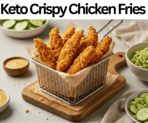 These Keto Crispy Chicken Fries are juicy and crunchy snacks. We prepare these fries with almond flour, garlic powder, black pepper, parmesan cheese, salt, onion powder, chicken breast, olive oil, paprika, and eggs. You may purchase all these items from the supermarkets. These fries contain 320 calories and three g of net carbs. We make these fries in almost thirty-three minutes. These fries store perfectly in the freezer for 60 days, so you can make them earlier. These Keto Crispy Chicken Fries are great for weekend lunches, family get-togethers, friend gatherings, celebrations, and events. You can serve these fries with keto honey mustard sauce, garlic butter zucchini noodles, and avocado cucumber salad.