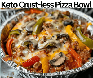 Keto Crust-less Pizza Bowl is a tasty & delicious dish. It contains everything that you enjoy in pizza, but without the added carbs from the crust. We make this pizza bowl with keto marinara sauce, meats, vegetables, and melted cheese. Your diet will not be ruined while having this delicious pizza. This dish is so adaptable that you can add the preferred proteins and vegetables as toppings. It includes pepperoni, mushrooms, olives, and peppers. The Keto Crust-less Pizza Bowl is a tasty, guilt-free, and fun way to please the pizza cravings. your desires for pizza. Enjoy on its own or with a salad.