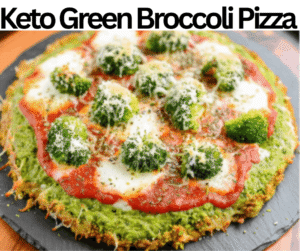 This Keto Green Broccoli Pizza has lower carb content with a cheesy and savory flavor. We prepare this pizza with several ingredients, such as keto pizza sauce, black pepper, broccoli, salt, eggs, Parmesan cheese, garlic powder, and mozzarella cheese. You can easily find all of these components at supermarkets, and you might even have them on your kitchen shelf already. This meal contains 285 kcal of caloric content and 4 g of net carbs in one slice of a single serving. This Keto Green Broccoli Pizza is best for weekend lunches, snacks, gatherings, and evenings. We require almost 40 minutes to make this cuisine completely with simple instructions. This pizza freezes well for nearly fifty to sixty days.  We don’t use any gluten components to make this pizza. You can serve this pizza with crispy bacon crumbles, zucchini noodles, or ranch dressing.