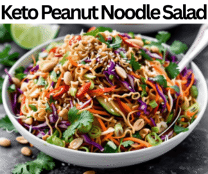 Keto Peanut Noodle Salad is a savory and rich meal with a reduced carb count. This meal is prepared by utilizing several kinds of ingredients, such as unsweetened peanut butter, rice vinegar, shirataki noodles, garlic, sesame oil, erythritol powder, coconut aminos, ginger, chili flakes, lime juice, cucumber, sesame seeds, green cabbage, cilantro, and green onions. Grocery stores have all of these components, and you could already have them on your kitchen pantry shelf. The noodles and sauce will change texture after defrosting, so don’t store this salad, but you can keep it in the fridge for almost 3 days. Keto Peanut Noodle Salad is perfect for weekdays, lunches, family events, dinners, and gatherings. This salad can be prepared in only twenty minutes with fewer problems or issues. This salad provides a fresh and rich taste in all bites. Serve this salad with a lettuce wrap platter or grilled chicken thighs.